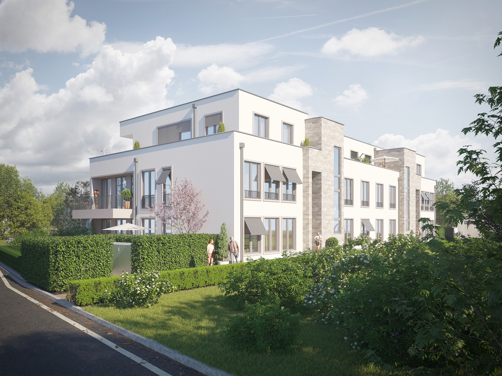 Grundstücken entlang des Rheins prägen das Straßenbild und